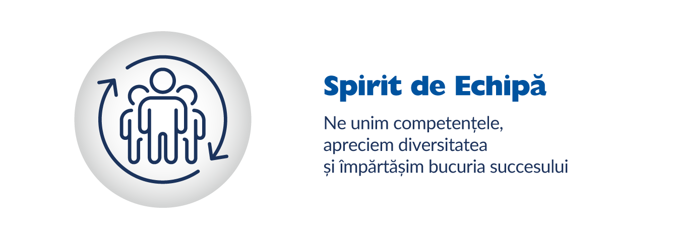 O cultură organizațională bazată pe încredere, transparență, comunicare, valori comune. Un mediu în care se blenduiesc generații, valorizând entuziasmul celor aflați la început de carieră, dar și experiența celor care lucrează de mulți ani în echipă.