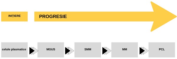 - MGUS (gamapatie monoclonală de semnificație nedeterminată) și progresia către MM