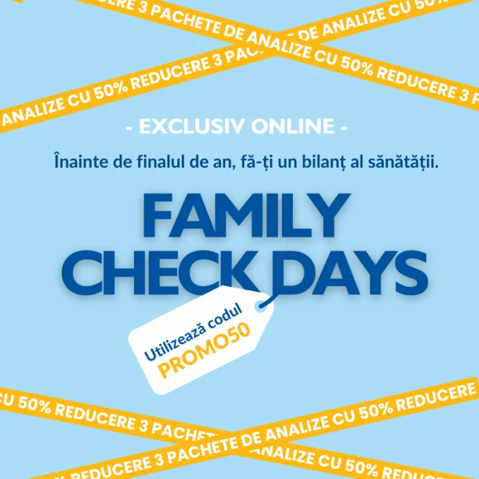 Pentru ca acest pas esențial să fie mai accesibil ca oricând, am creat Family Check Days - o campanie prin care poți accesa trei pachete de analize esențiale pentru femei, bărbați și copii, cu 50% reducere.