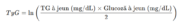 TyG index este un indice calculat pe baza valorilor serice ale trigliceridelor și glicemiei à jeun: